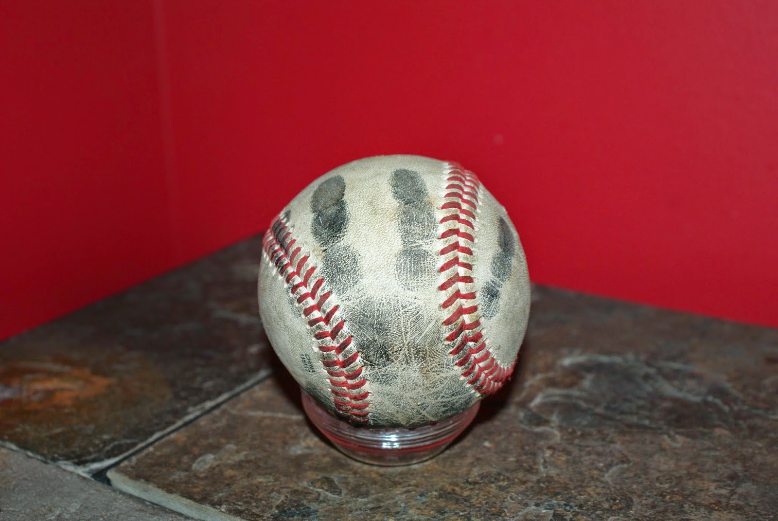 My son has just started to throw the baseball around with his Dad and wanted to come up with a special way to commemorate this year. I took one of the very baseballs they use and a stamp pad and had him put his handprint on the baseball. (TIP: I found the stamp pad in the scrapbooking isle of the craft store. The stamp pad that the kids had wasn’t quite dark enough so I opted for a regular one made for real stamping.) I also wrote the year on the ball so we will always remember it always!