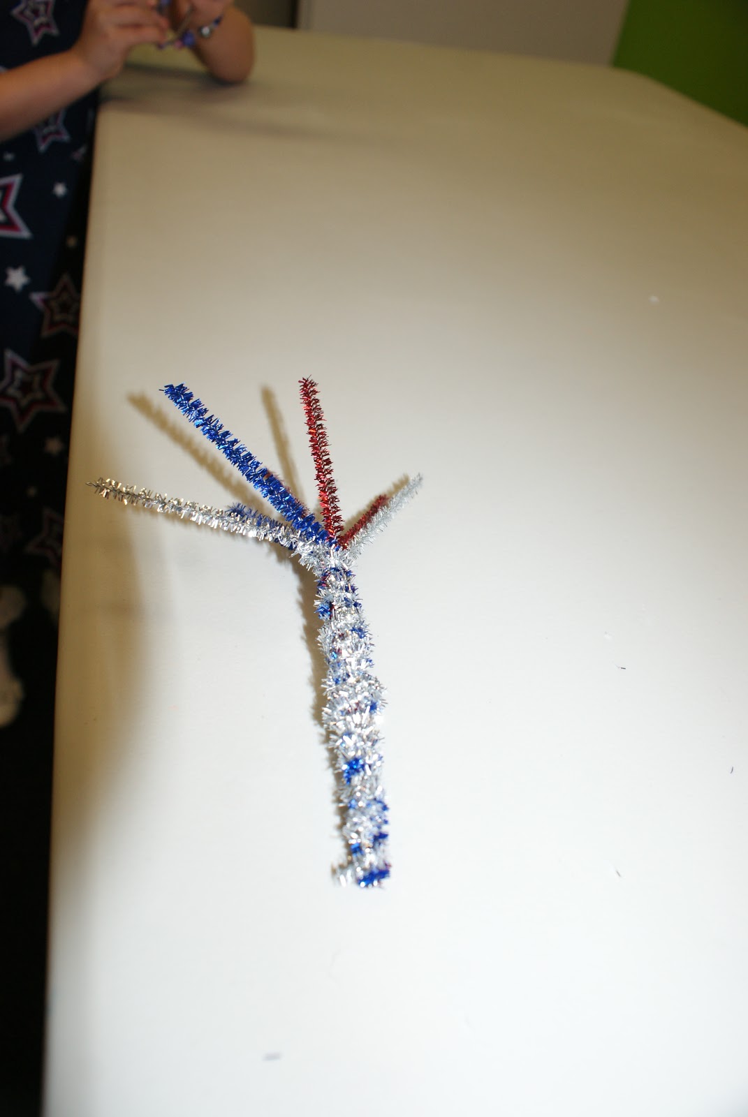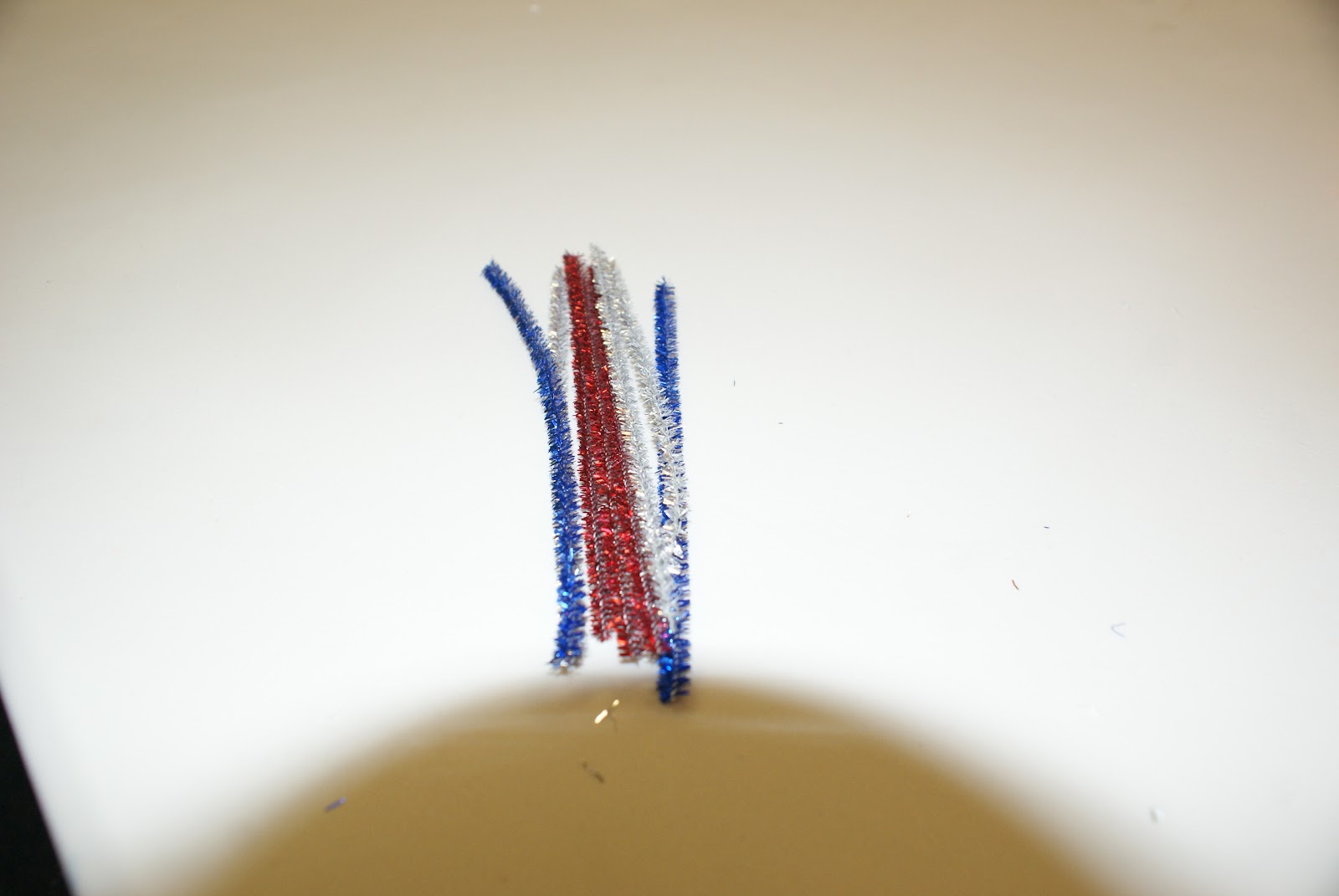 This craft is great if you have little ones or big ones alike! It's super easy and really good practice for little fingers! All you need are pipe cleaners! Any color with do. I happened to have a few red, white and blue glittery ones but they are equally as cute with other colors